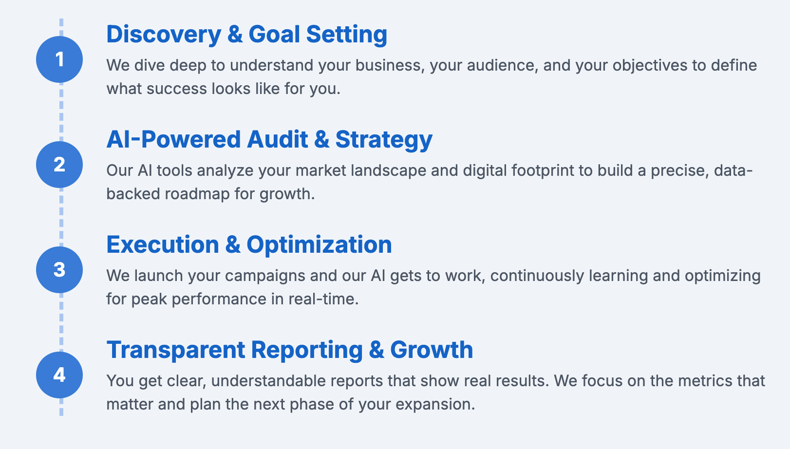 We follow a clear, collaborative process designed to demystify digital marketing and deliver results, fast.